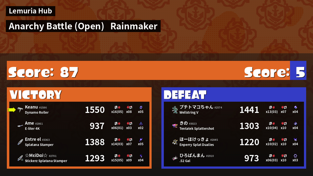 | Mode | Rainmaker - Anarchy Battle (Open) | ||