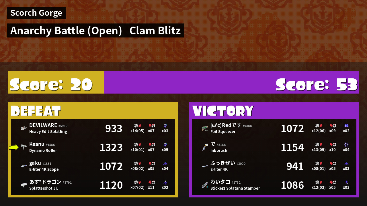 | Mode | Clam Blitz - Anarchy Battle (Open) | ||