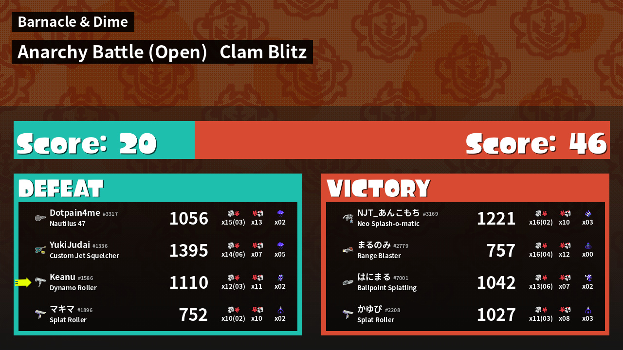 | Mode | Clam Blitz - Anarchy Battle (Open) | ||