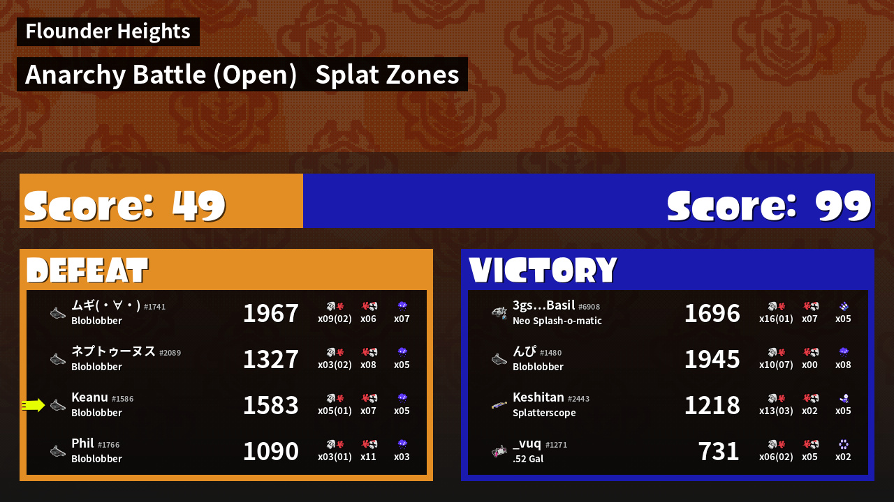 | Mode | Splat Zones - Anarchy Battle (Open) | ||