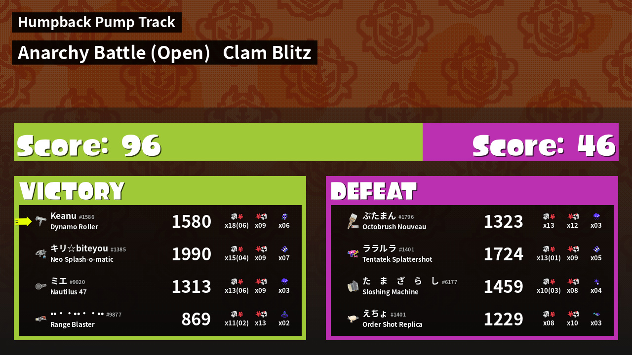 | Mode | Clam Blitz - Anarchy Battle (Open) | ||