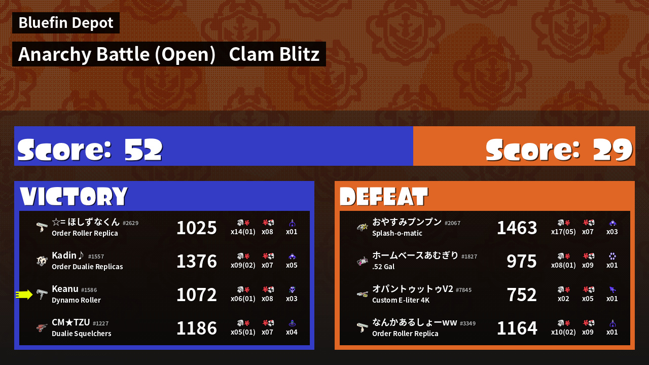 | Mode | Clam Blitz - Anarchy Battle (Open) | ||