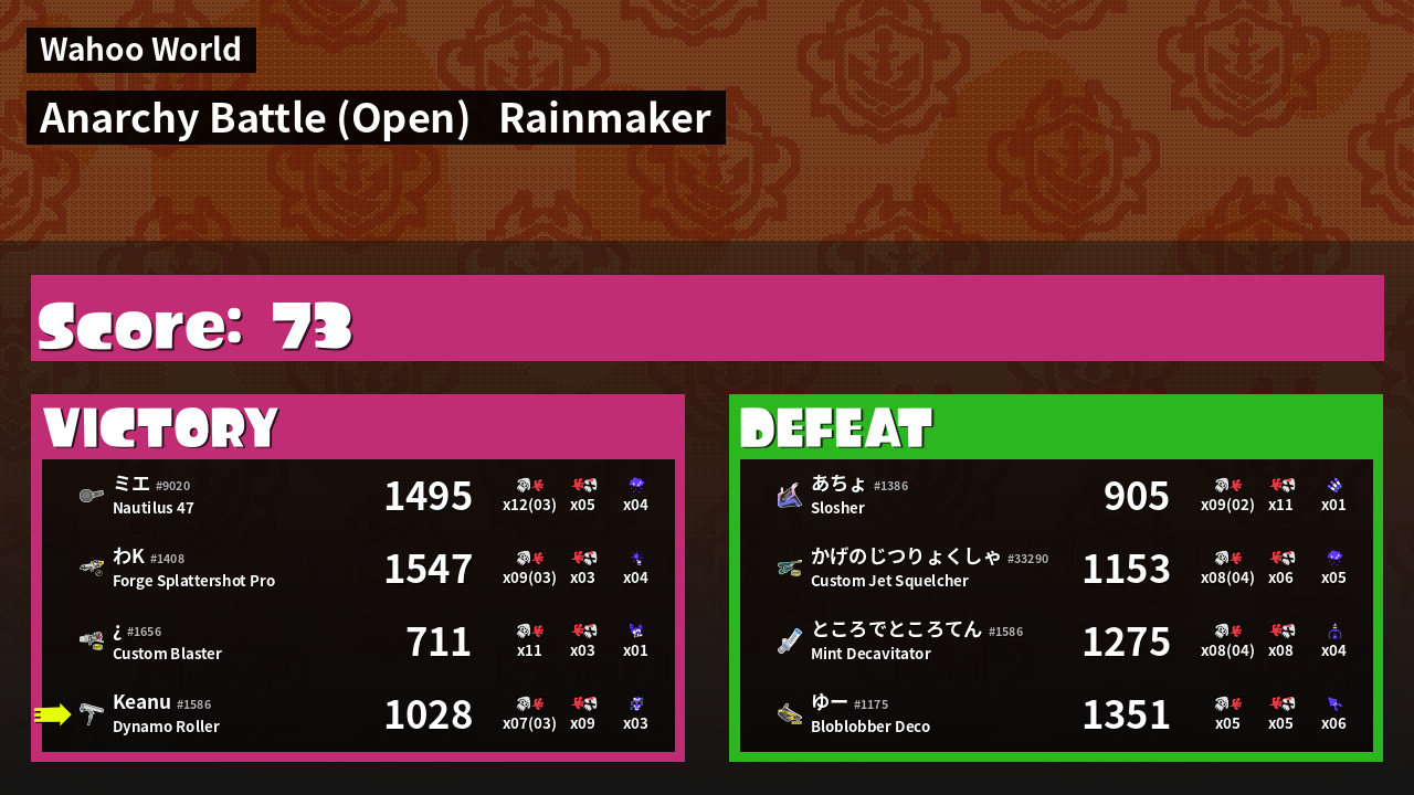 | Mode | Rainmaker - Anarchy Battle (Open) | ||
