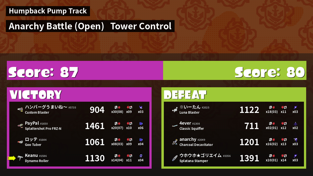 | Mode | Tower Control - Anarchy Battle (Open) | ||