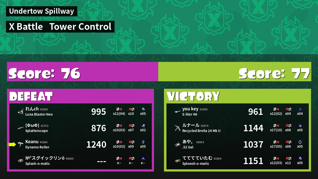 | Medals | #1 Turf Inker #1 Enemy Splatter #1 Ground Traveler | ||