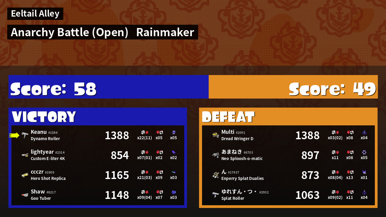 | Mode | Rainmaker - Anarchy Battle (Open) | ||