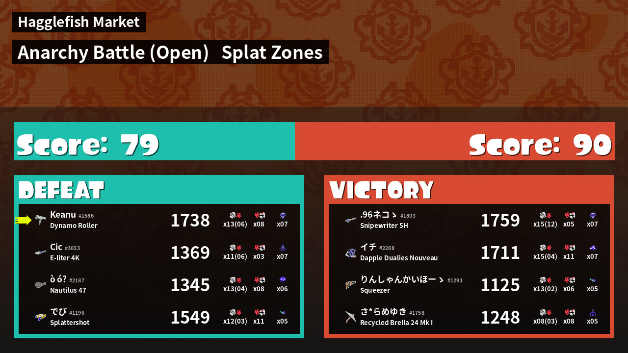 | Mode | Splat Zones - Anarchy Battle (Open) | ||