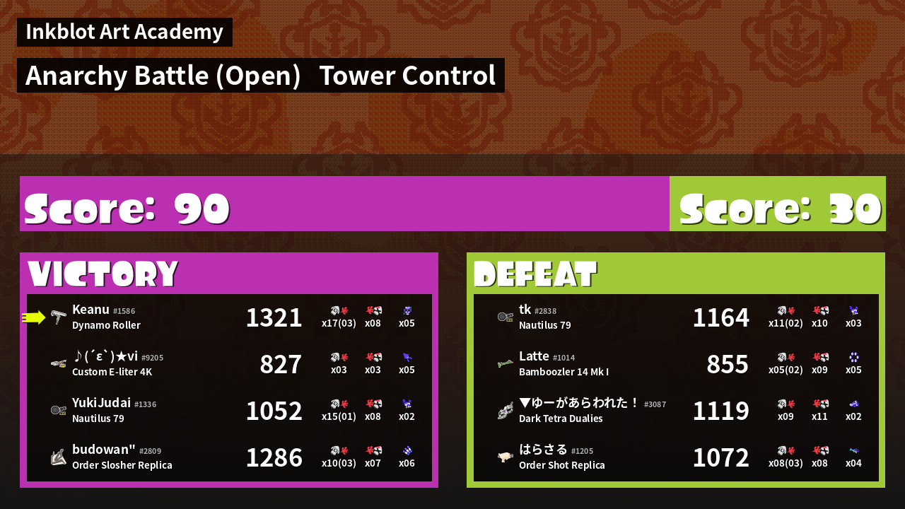 | Mode | Tower Control - Anarchy Battle (Open) | ||