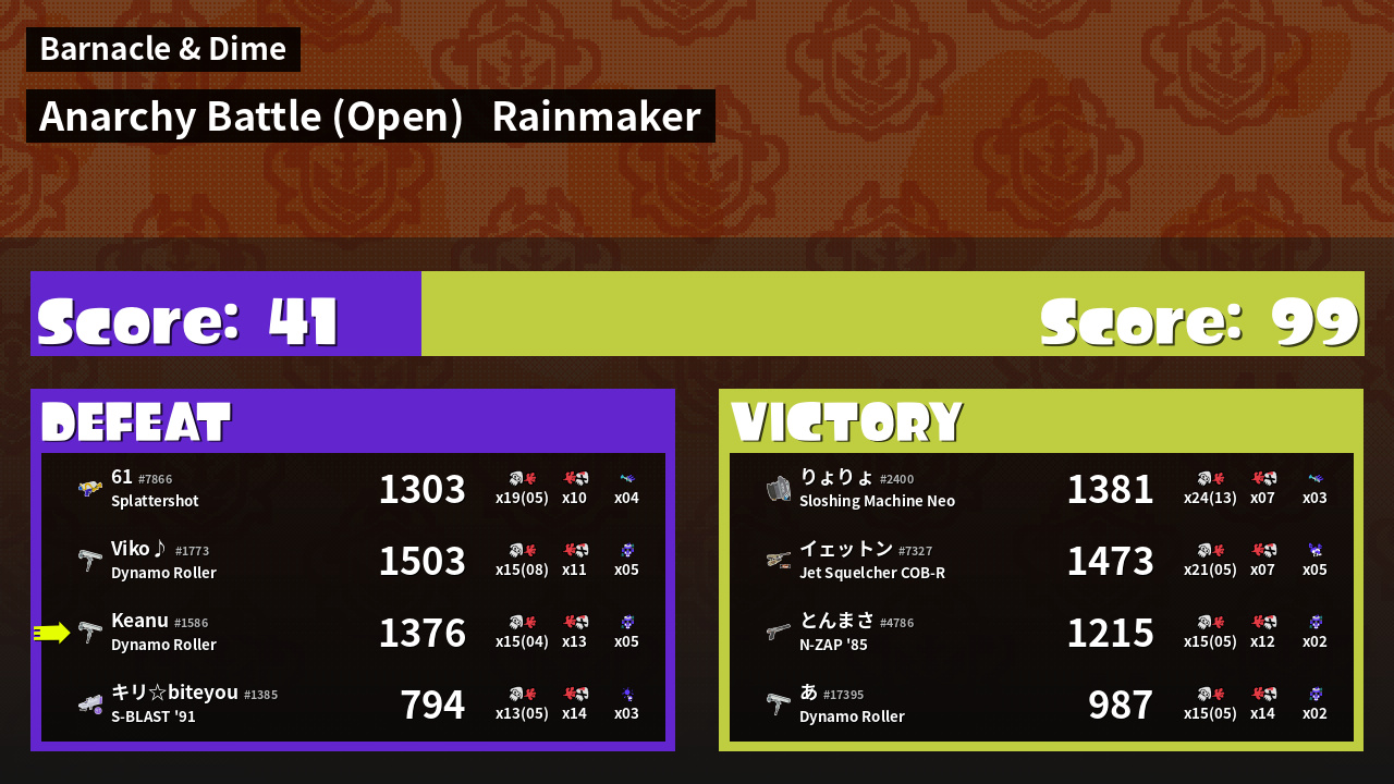 | Mode | Rainmaker - Anarchy Battle (Open) | ||