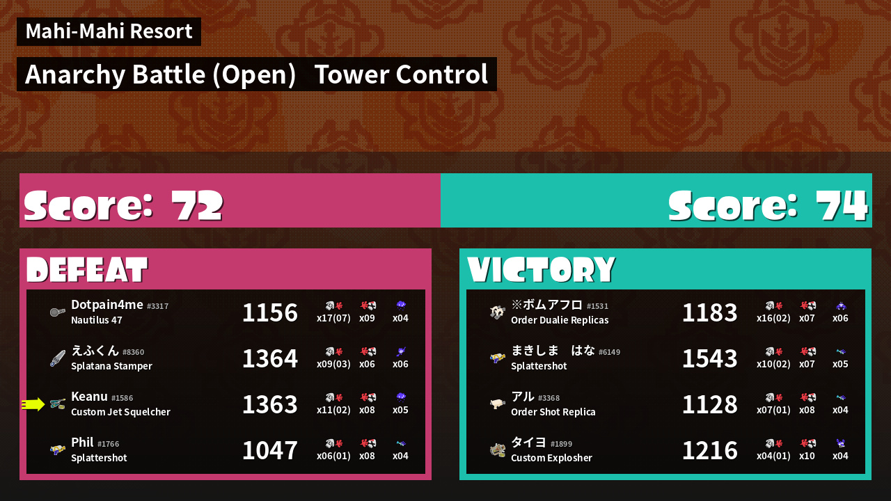 | Mode | Tower Control - Anarchy Battle (Open) | ||