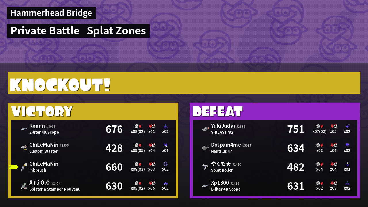| Mode | Splat Zones - Private Battle | ||