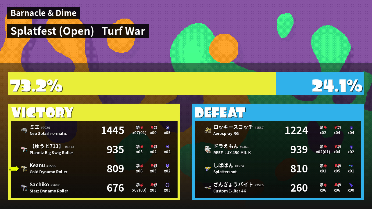 | Medals | #1 Super Jump Spot #1 Enemy Splatter #1 Ink Consumer | ||