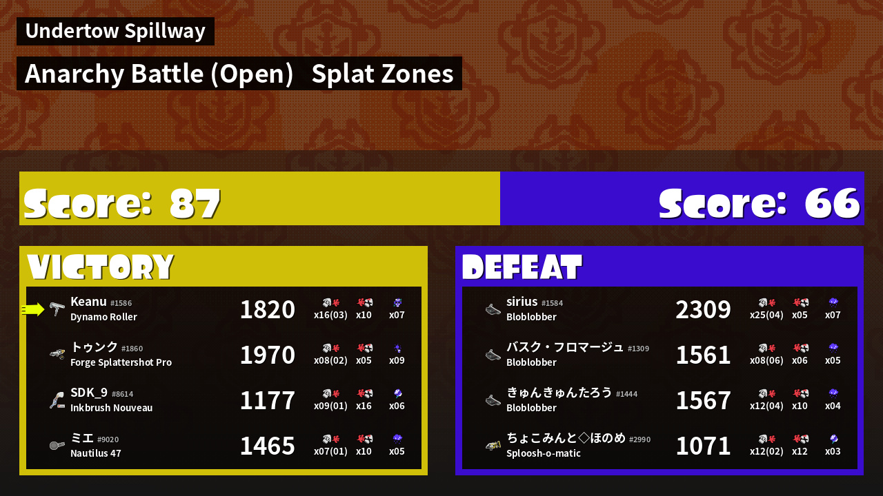 | Mode | Splat Zones - Anarchy Battle (Open) | ||
