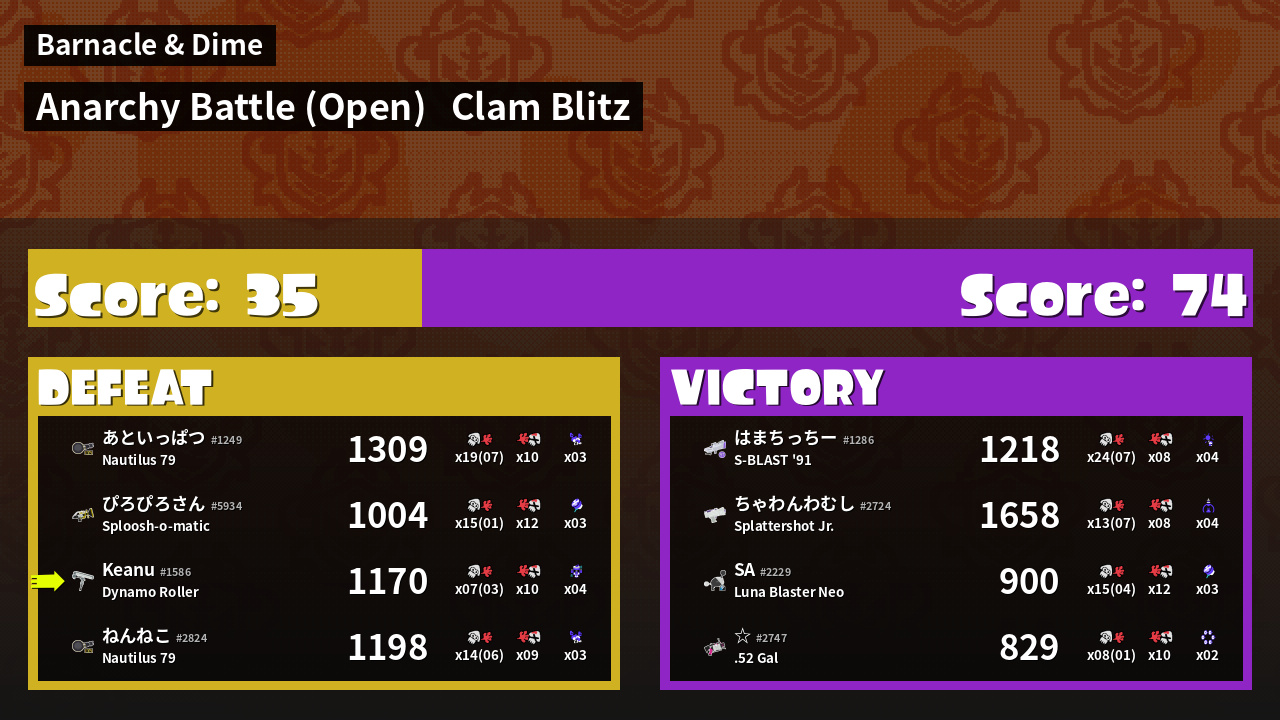 | Mode | Clam Blitz - Anarchy Battle (Open) | ||