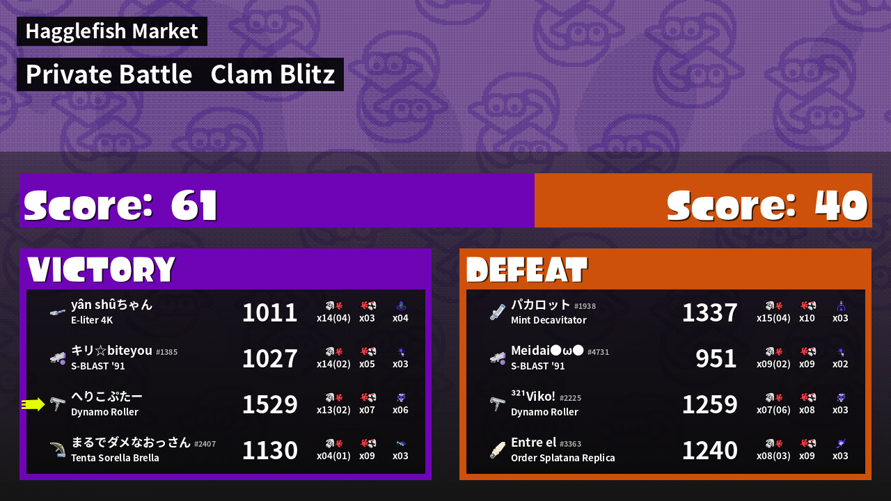 | Weapon | Dynamo Roller ( Sprinkler / Tacticooler) | ||