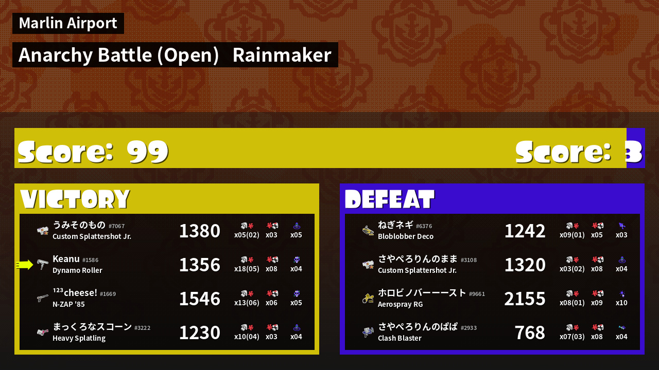 | Mode | Rainmaker - Anarchy Battle (Open) | ||
