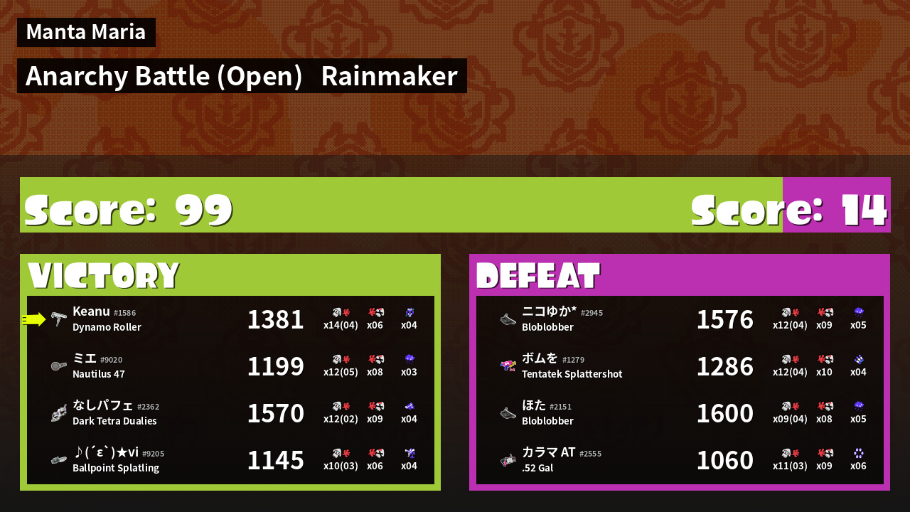 | Mode | Rainmaker - Anarchy Battle (Open) | ||