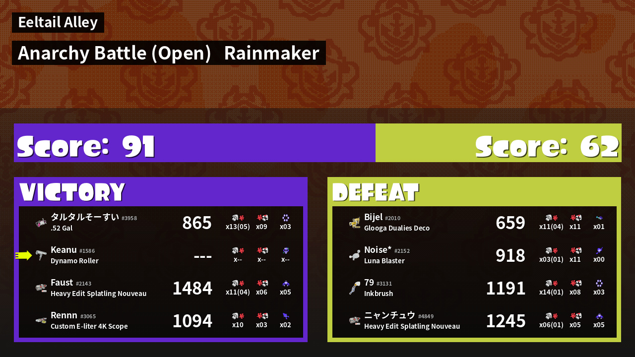 | Mode | Rainmaker - Anarchy Battle (Open) | ||