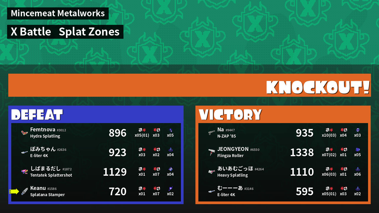| Mode | Splat Zones - X Battle | ||