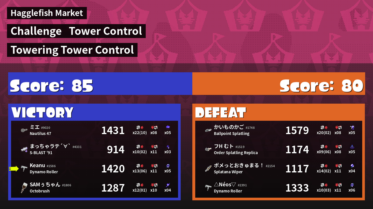 | Medals | #1 Checkpoint Breaker #1 Tacticooler User #2 Overall Splatter | ||