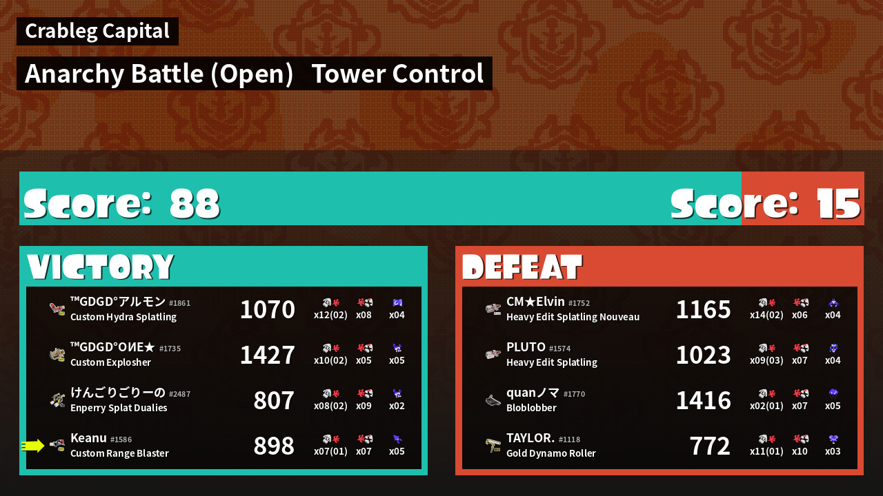 | Mode | Tower Control - Anarchy Battle (Open) | ||
