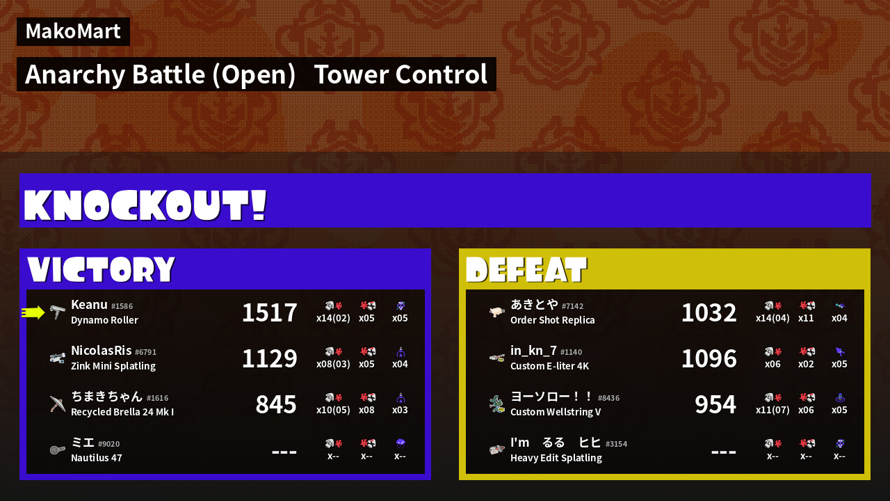 | Mode | Tower Control - Anarchy Battle (Open) | ||