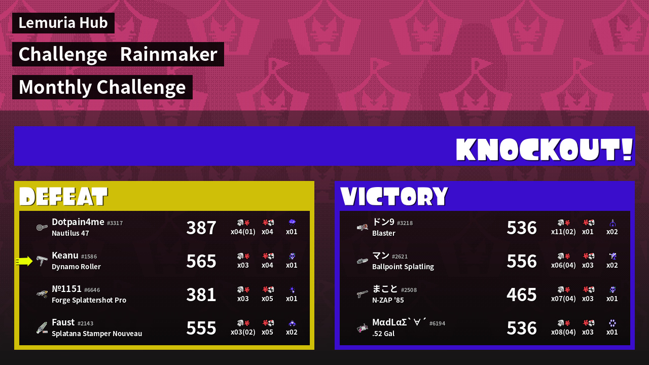 | Medals | #1 Turf Inker #1 Super Jump Spot #1 Enemy Splatter | ||