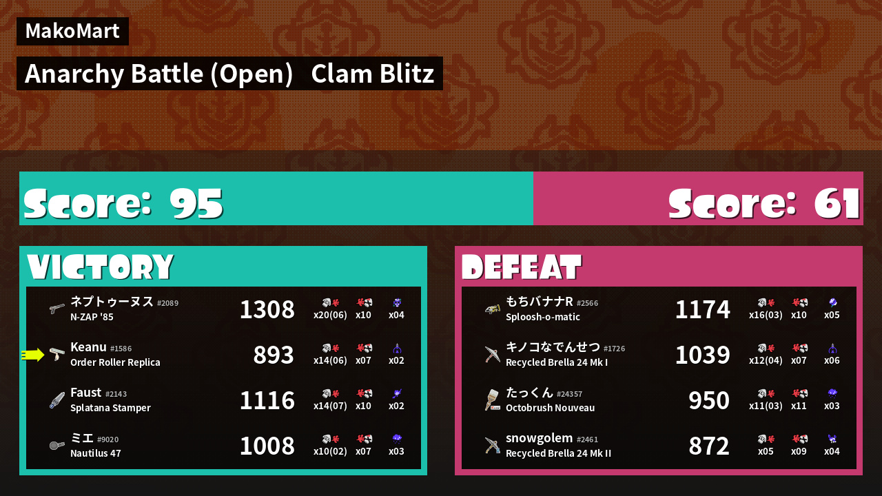 | Mode | Clam Blitz - Anarchy Battle (Open) | ||