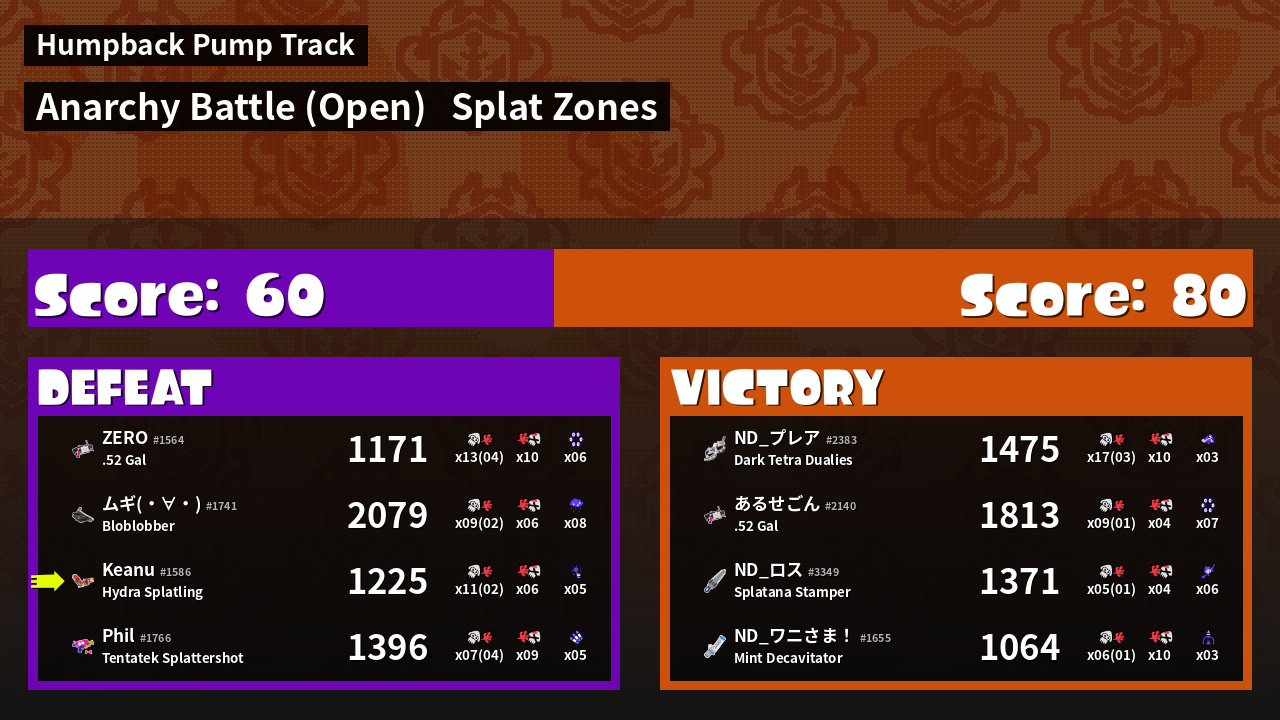 | Mode | Splat Zones - Anarchy Battle (Open) | ||
