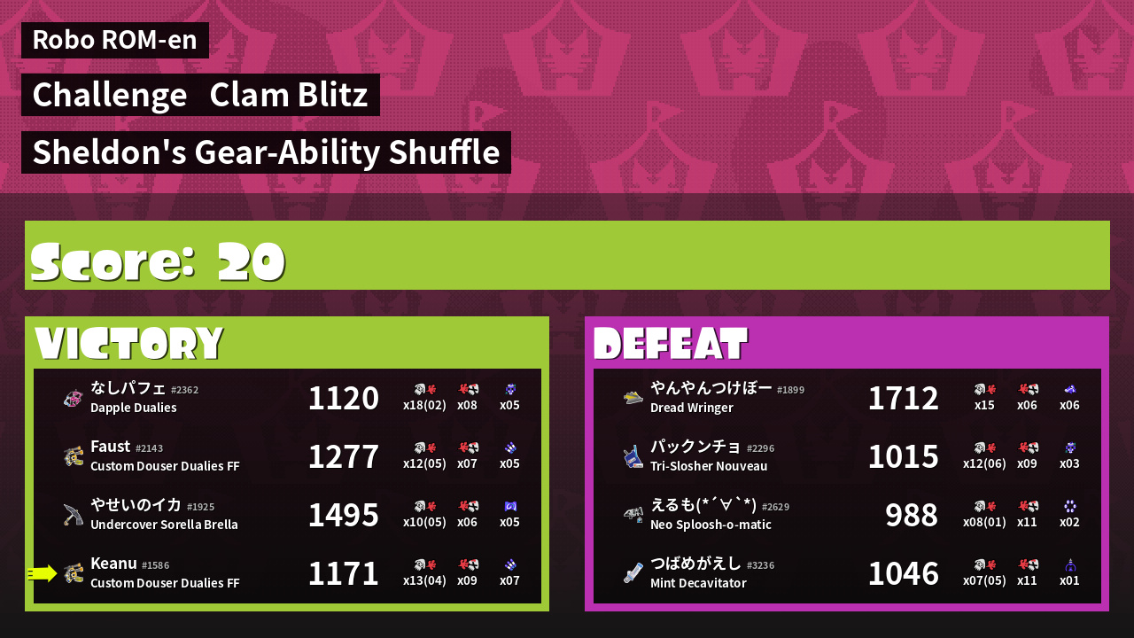 | Weapon | Custom Douser Dualies FF ( Burst Bomb / Triple Inkstrike) | ||