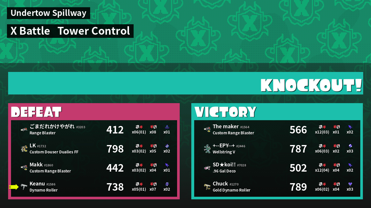 | Medals | #1 Damage Taker #1 Tacticooler User #2 Overall Splatter | ||