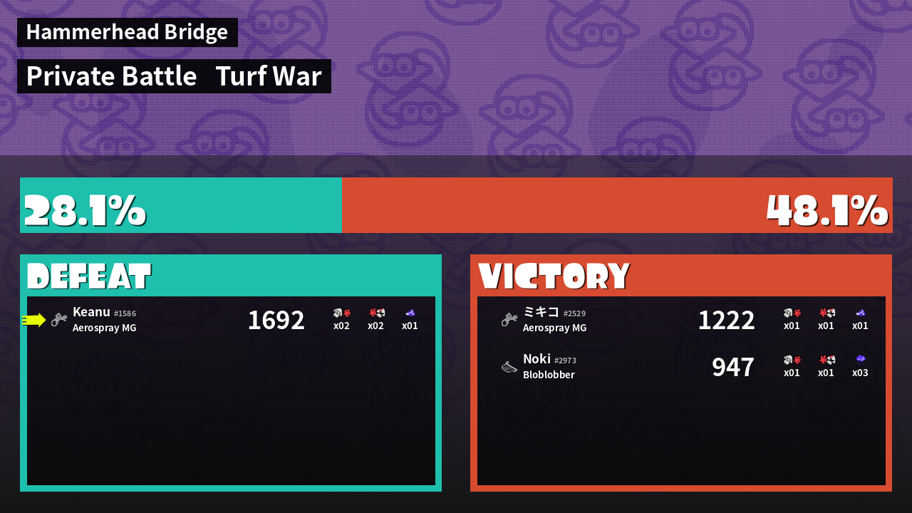 | Mode | Turf War - Private Battle | ||