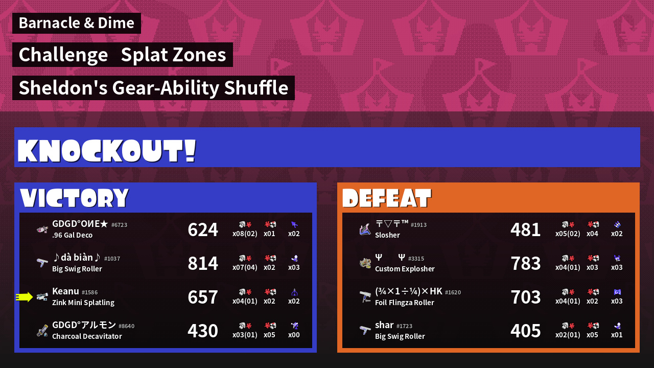 | Medals | #1 Splat Zone Inker #1 Super Jump Spot First Splat! | ||