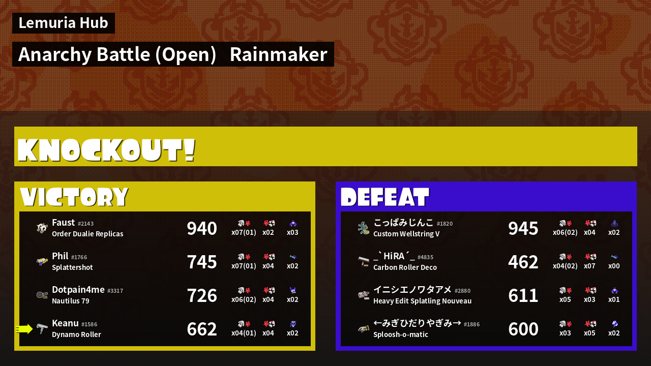 | Mode | Rainmaker - Anarchy Battle (Open) | ||