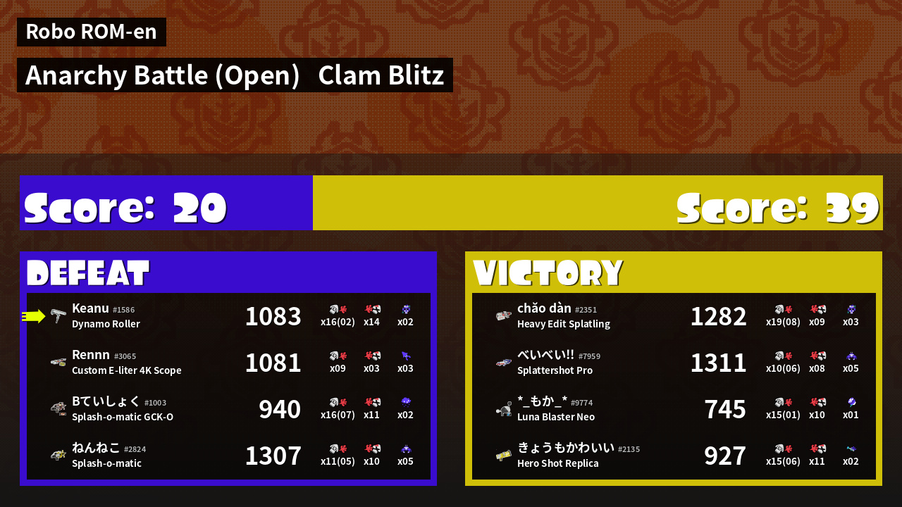 | Mode | Clam Blitz - Anarchy Battle (Open) | ||