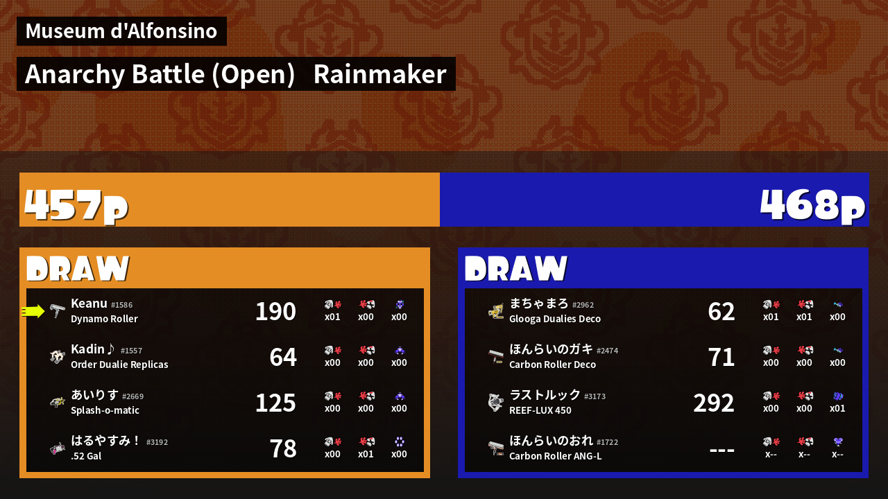 | Mode | Rainmaker - Anarchy Battle (Open) | ||