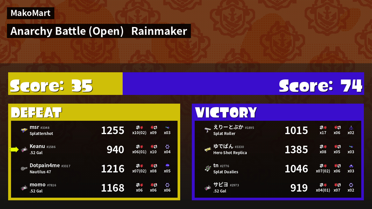 | Mode | Rainmaker - Anarchy Battle (Open) | ||