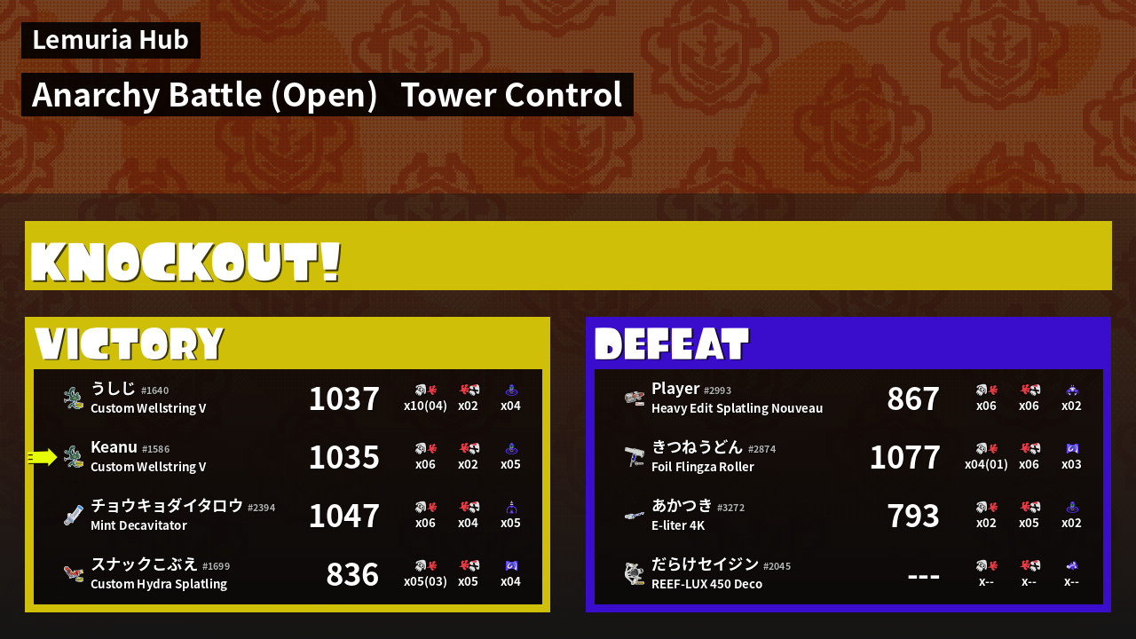 | Mode | Tower Control - Anarchy Battle (Open) | ||
