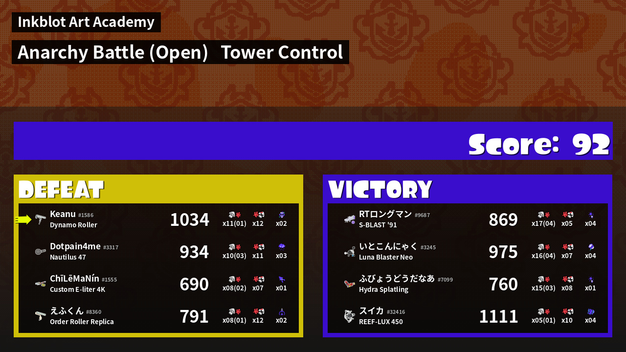 | Mode | Tower Control - Anarchy Battle (Open) | ||