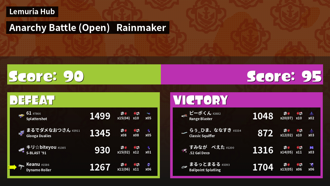 | Mode | Rainmaker - Anarchy Battle (Open) | ||