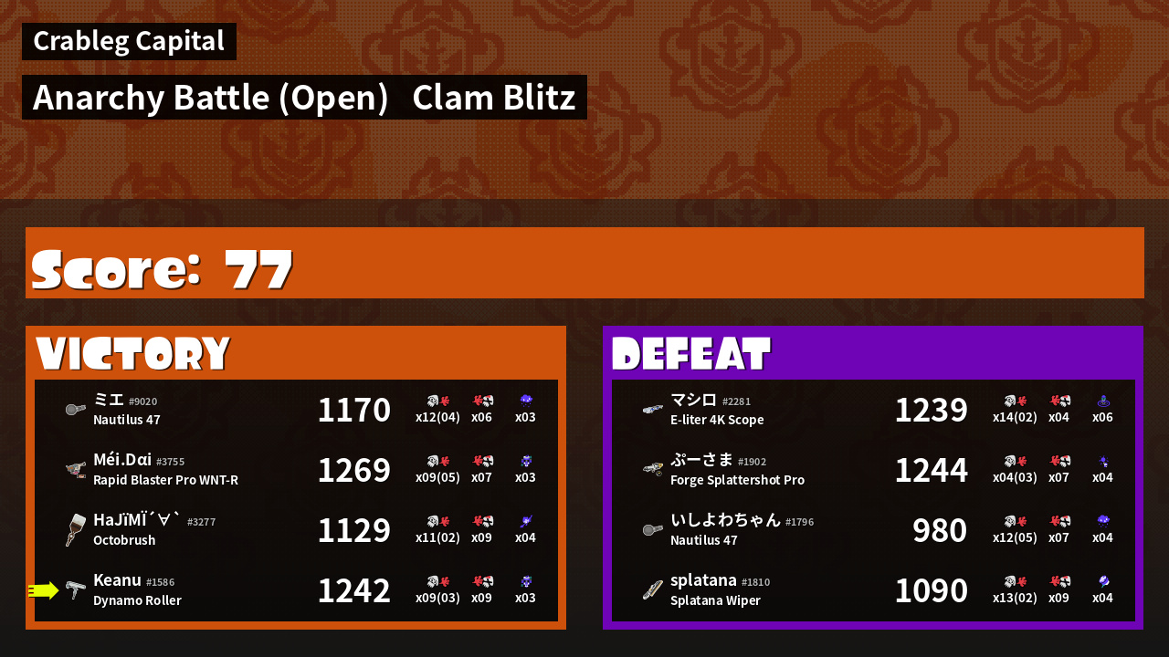 | Mode |    Clam Blitz -   Anarchy Battle (Open) | ||