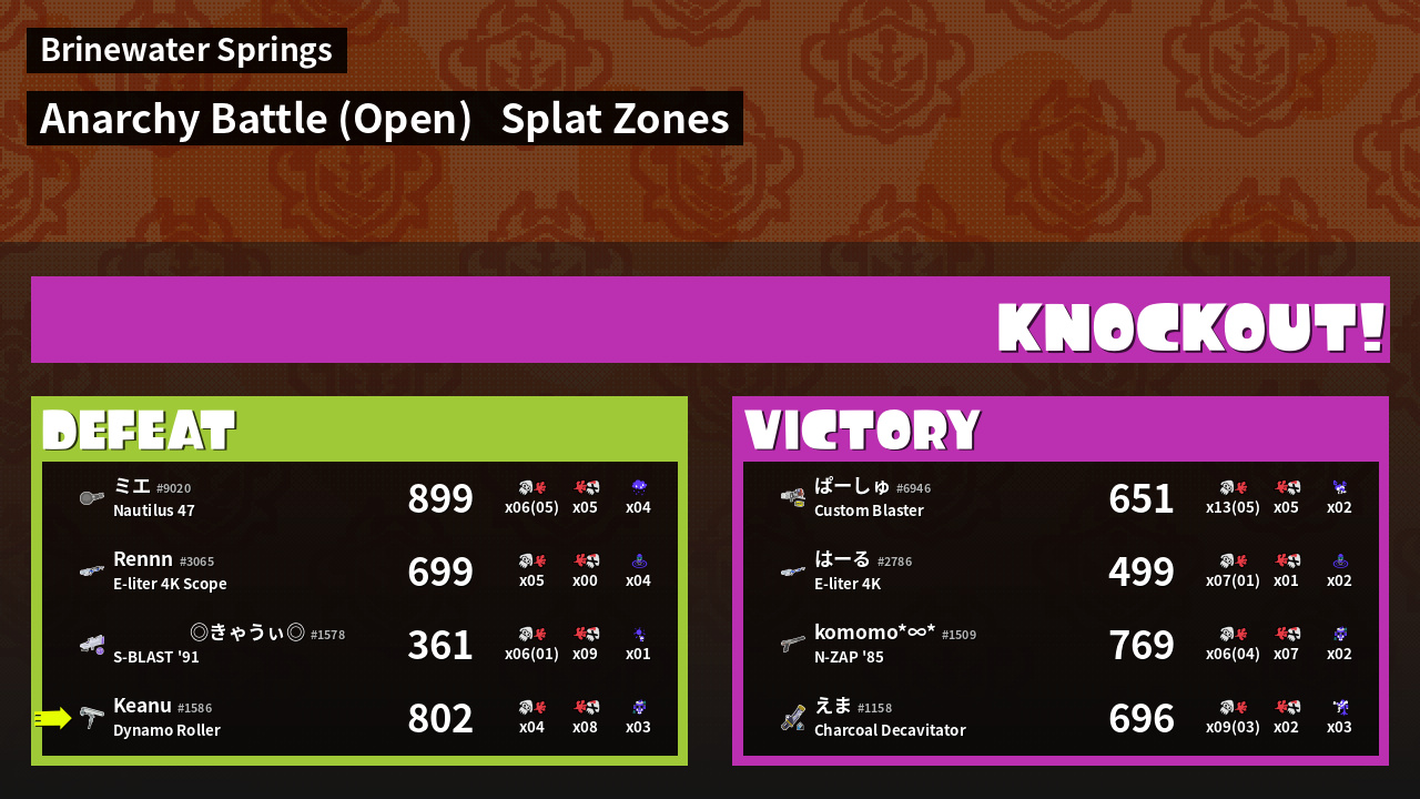 | Mode | Splat Zones - Anarchy Battle (Open) | ||