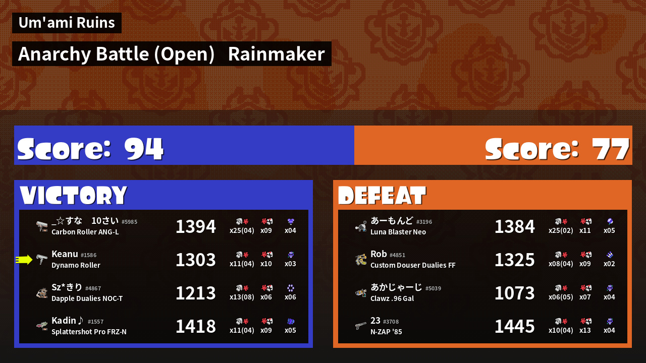 | Mode | Rainmaker - Anarchy Battle (Open) | ||