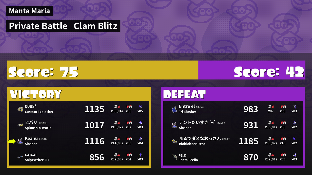 | Mode | Clam Blitz - Private Battle | ||