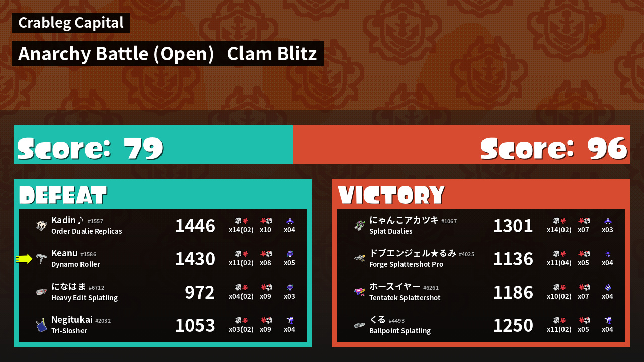 | Mode | Clam Blitz - Anarchy Battle (Open) | ||