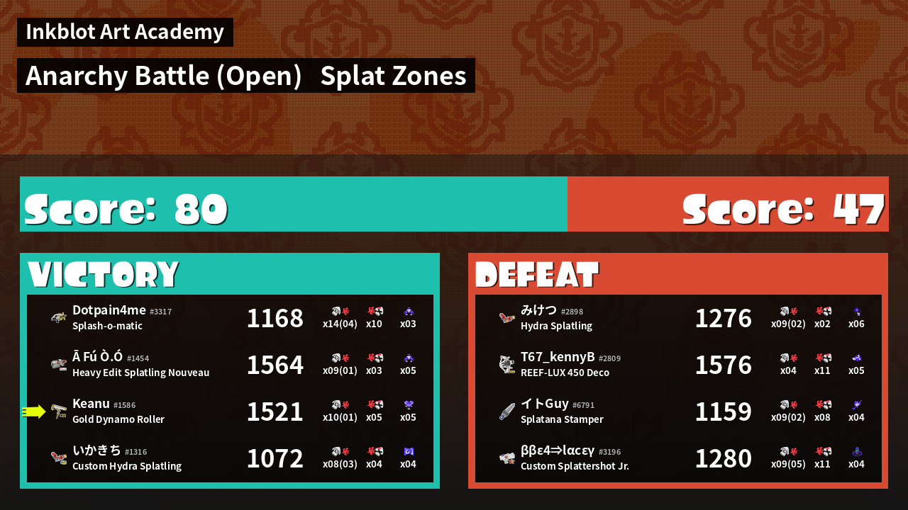 | Mode | Splat Zones - Anarchy Battle (Open) | ||