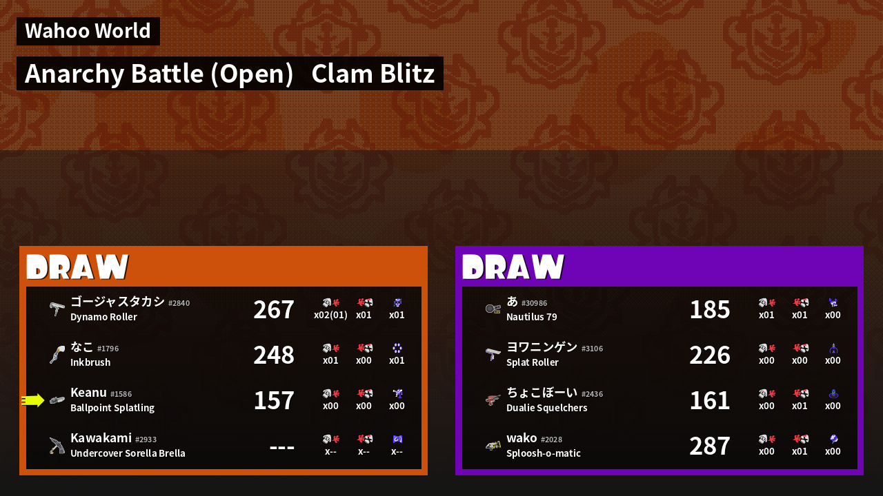 | Mode | Clam Blitz - Anarchy Battle (Open) | ||