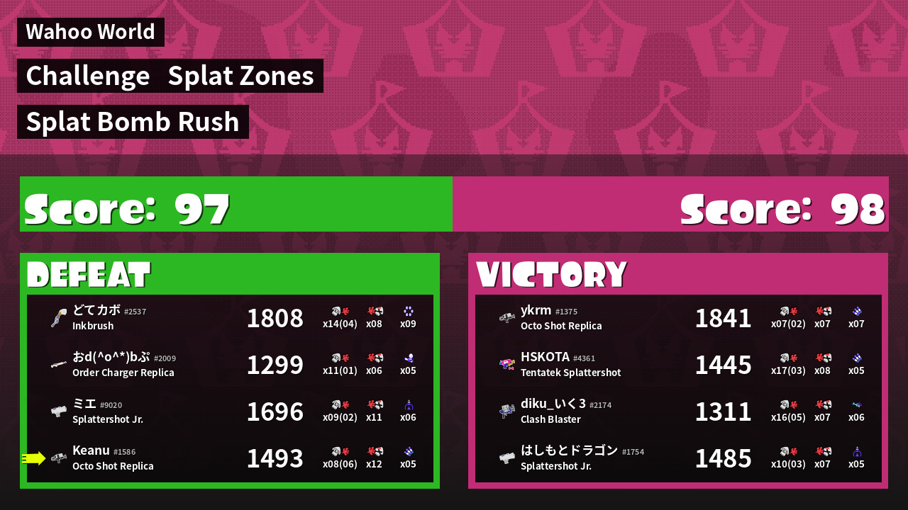 | Medals | #1 Splat Zone Guard #1 Splat Assister #2 Splat Zone Inker | ||