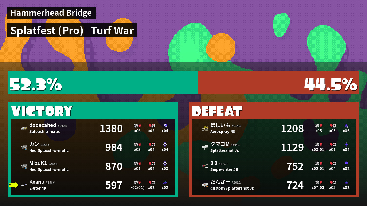 | Medals | #1 Super Jump Spot #1 Splat Assister #1 Wave Breaker User | ||