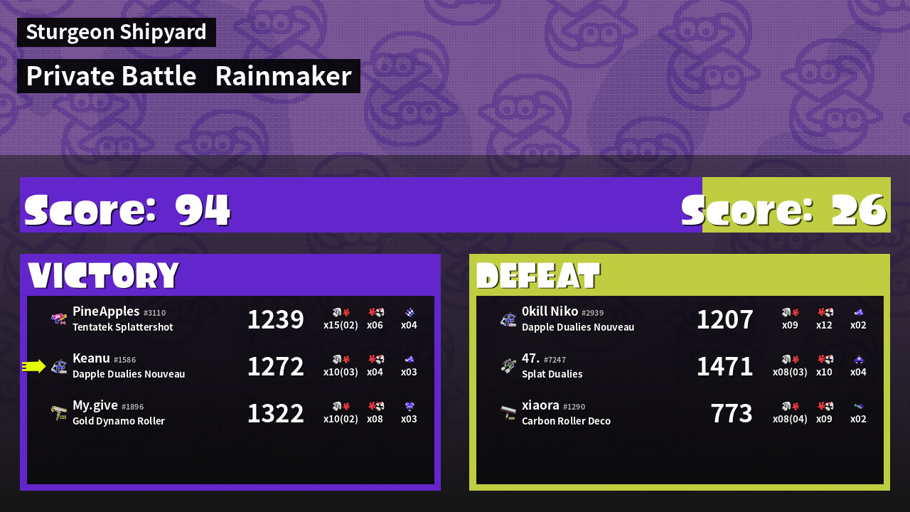 | Medals | #1 Super Jump Spot #1 Splat Assister #1 Rainmaker Carrier | ||